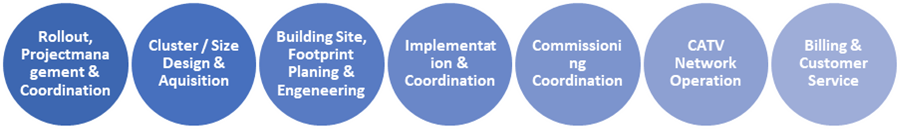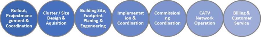 - Installation und Integration der Außen- und Inneneinheiten, Verkabelung Rundfunkempfangsstellen und Realisierung der Bauleistungen inkl. Tiefbau bis zum Endkunden (Last Mile)